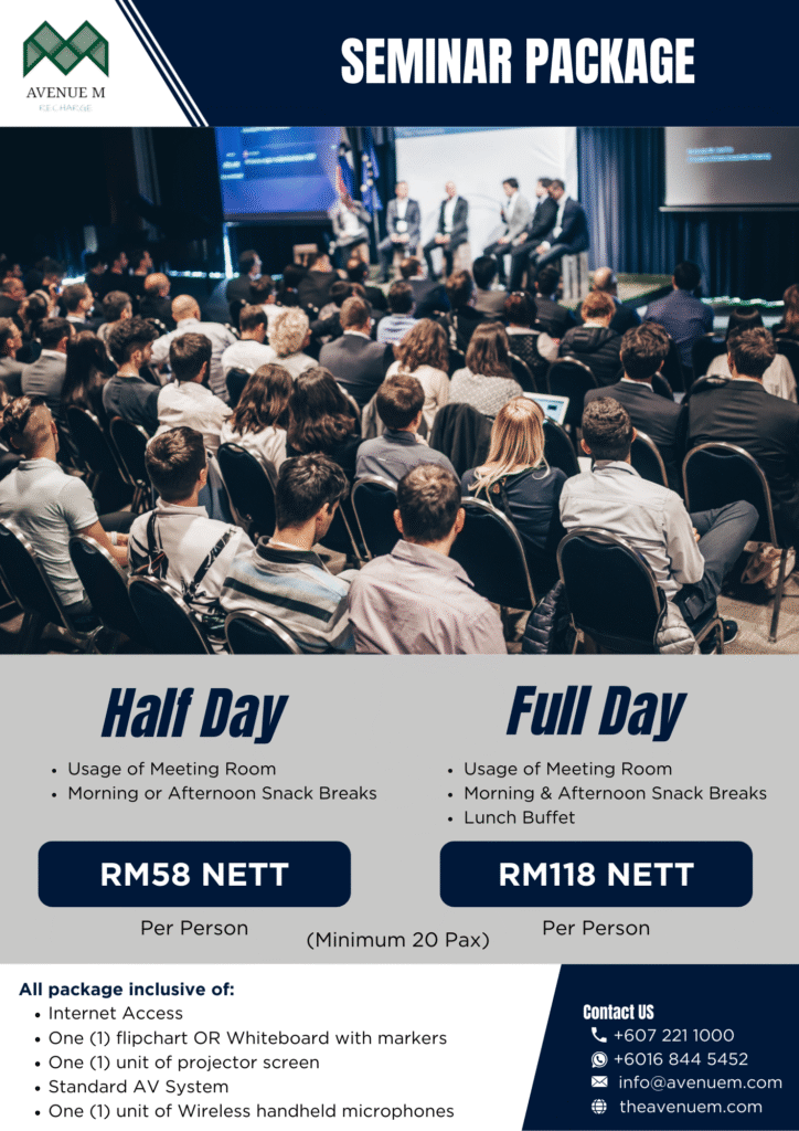 Dive into a seamless meeting experience with 𝗧𝗵𝗲 𝗔𝘃𝗲𝗻𝘂𝗲 𝗠 Seminar Meeting package!